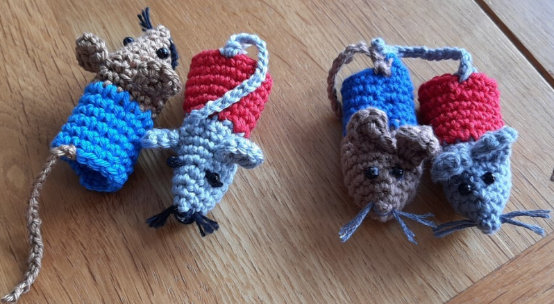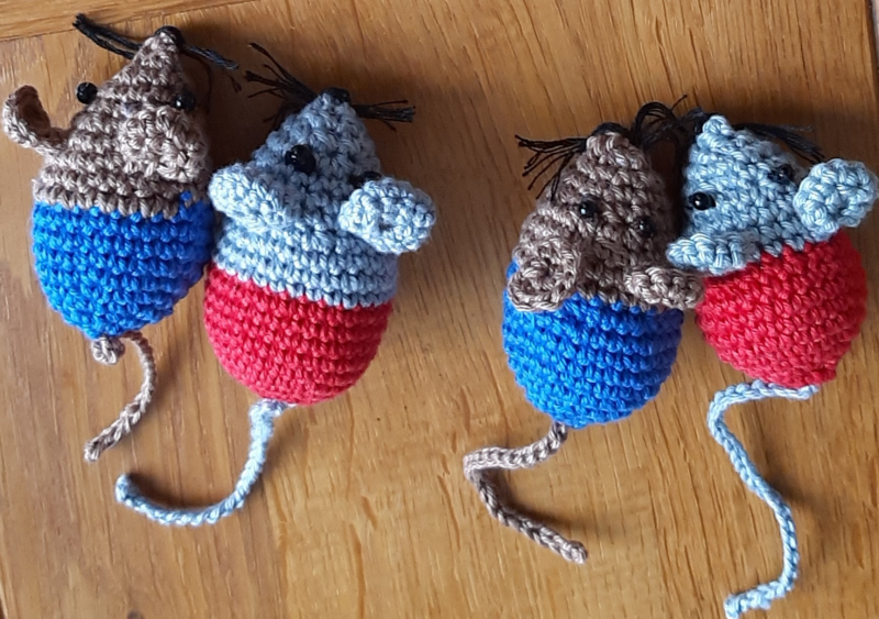 U kunt twee muisjes bestellen voor €5- exclusief verzendkosten. Met kraaloogjes of kruissteek-oogjes.